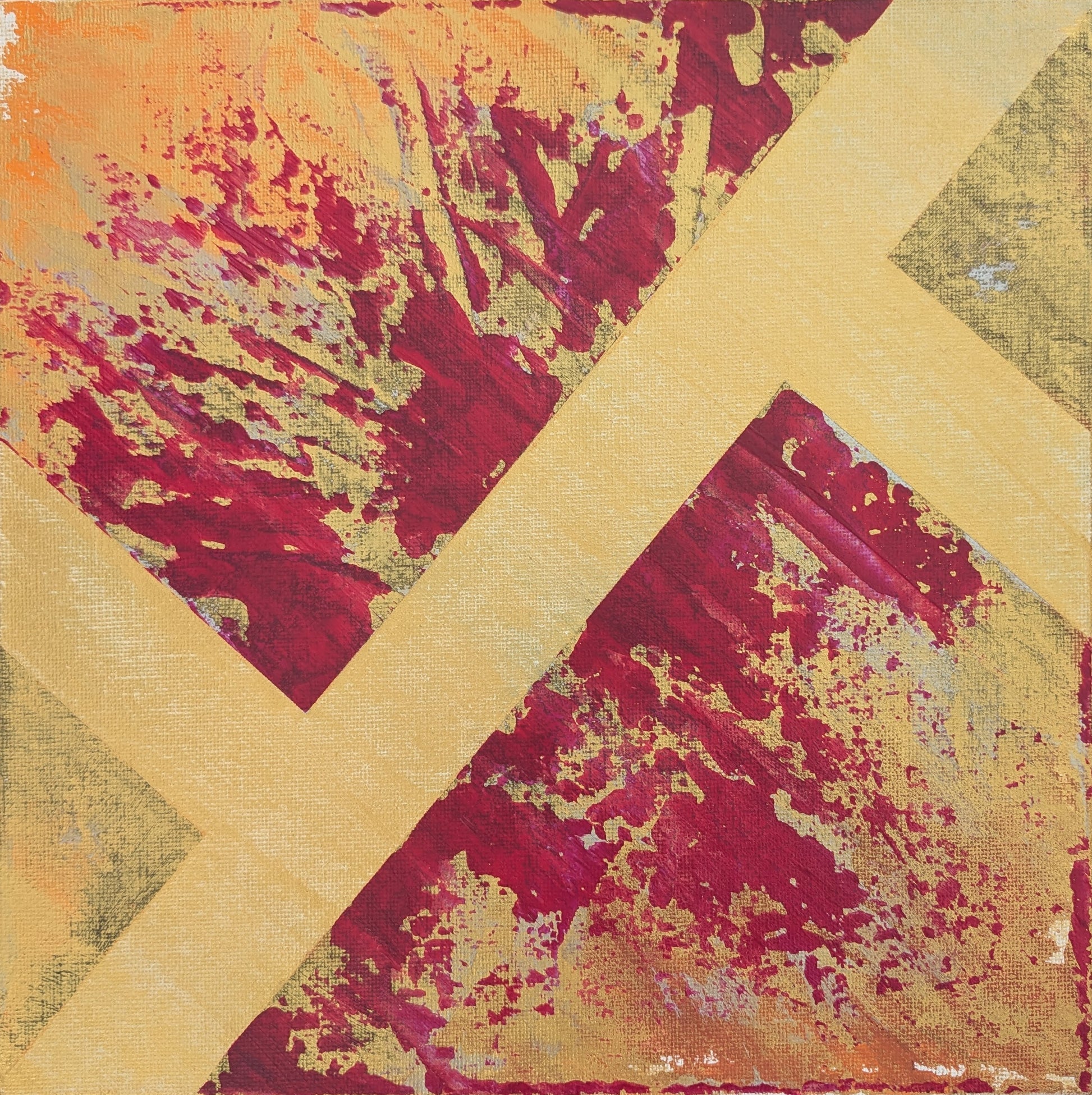 "0213E" est une peinture acrylique abstraite originale, sur un carton entoilé au format 25x25cm (année 2025).