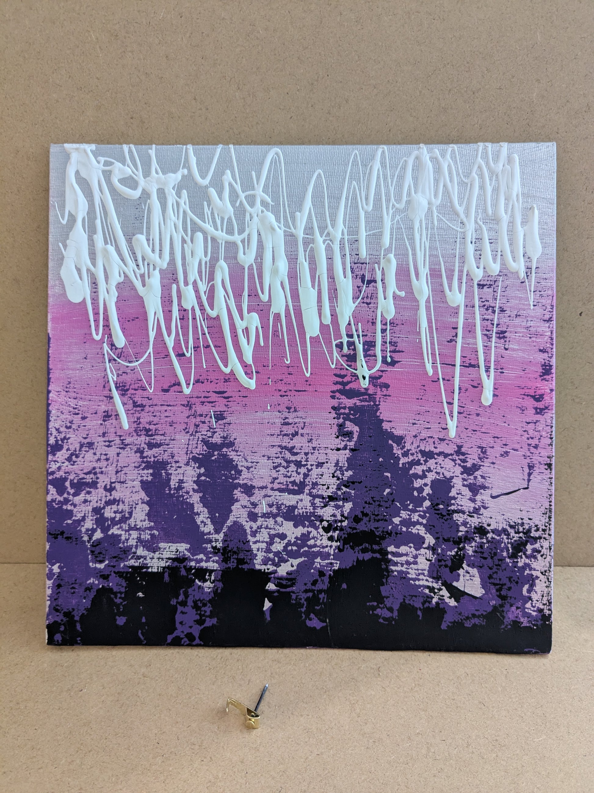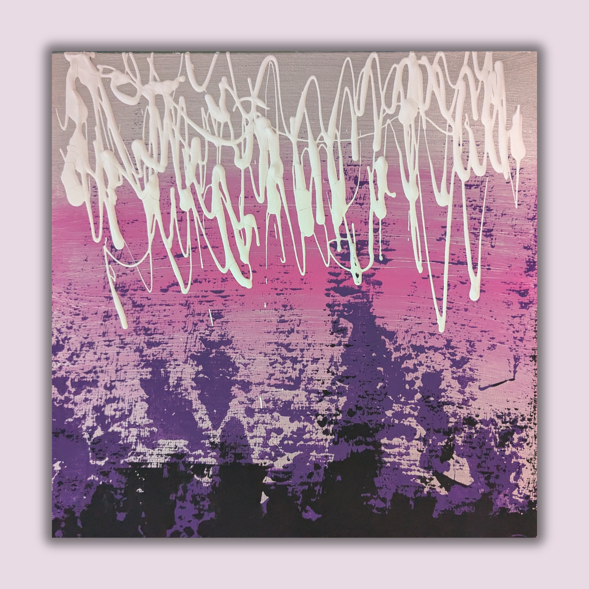 "0222C" est une peinture acrylique abstraite originale, sur un carton entoilé au format 25x25cm (année 2025).
