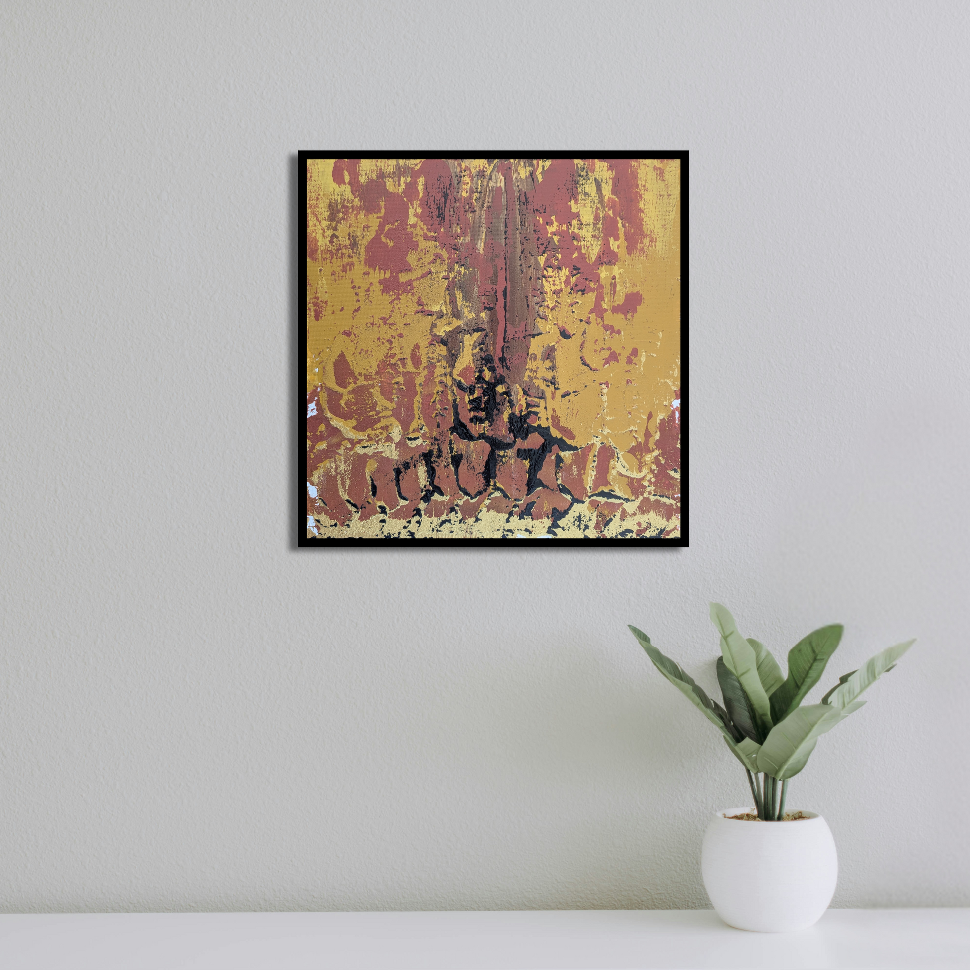 "Le volcan" est une peinture acrylique abstraite originale, sur un carton entoilé au format 25x25cm (année 2025).