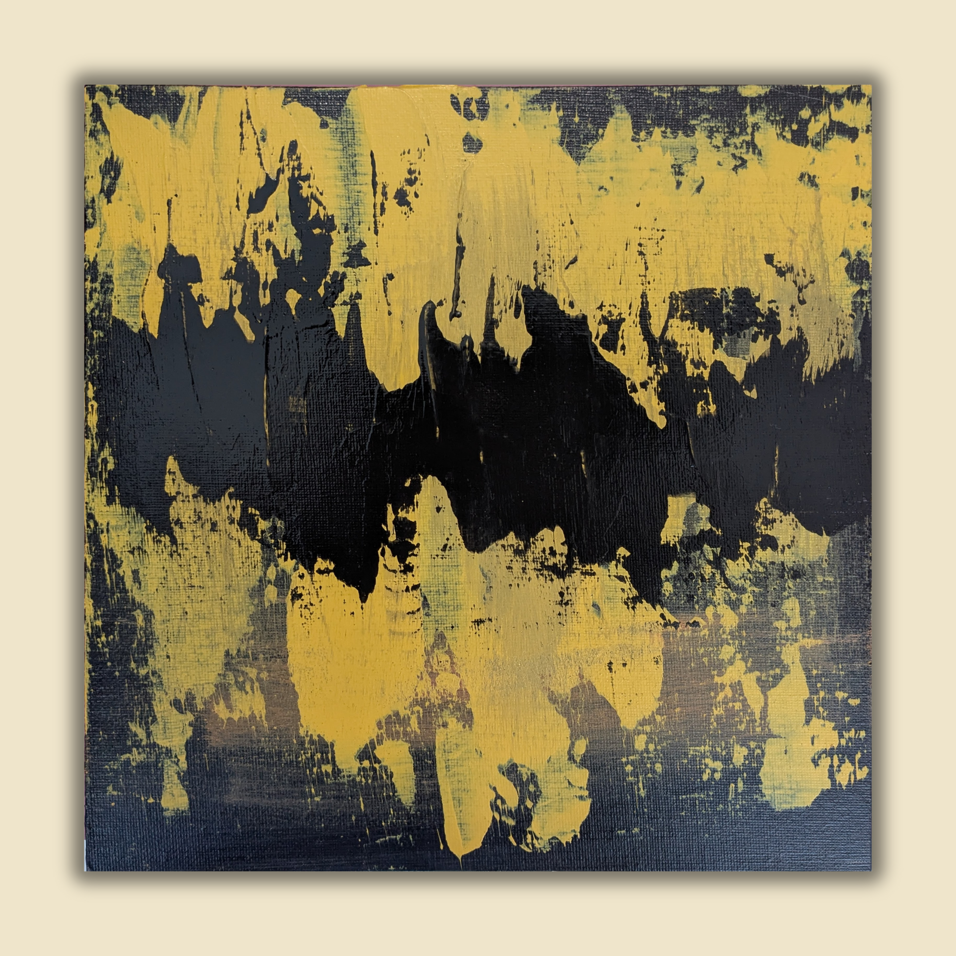 "Les vibrations du soleil" est une peinture acrylique abstraite originale, sur un carton entoilé au format 25x25cm (année 2025).
