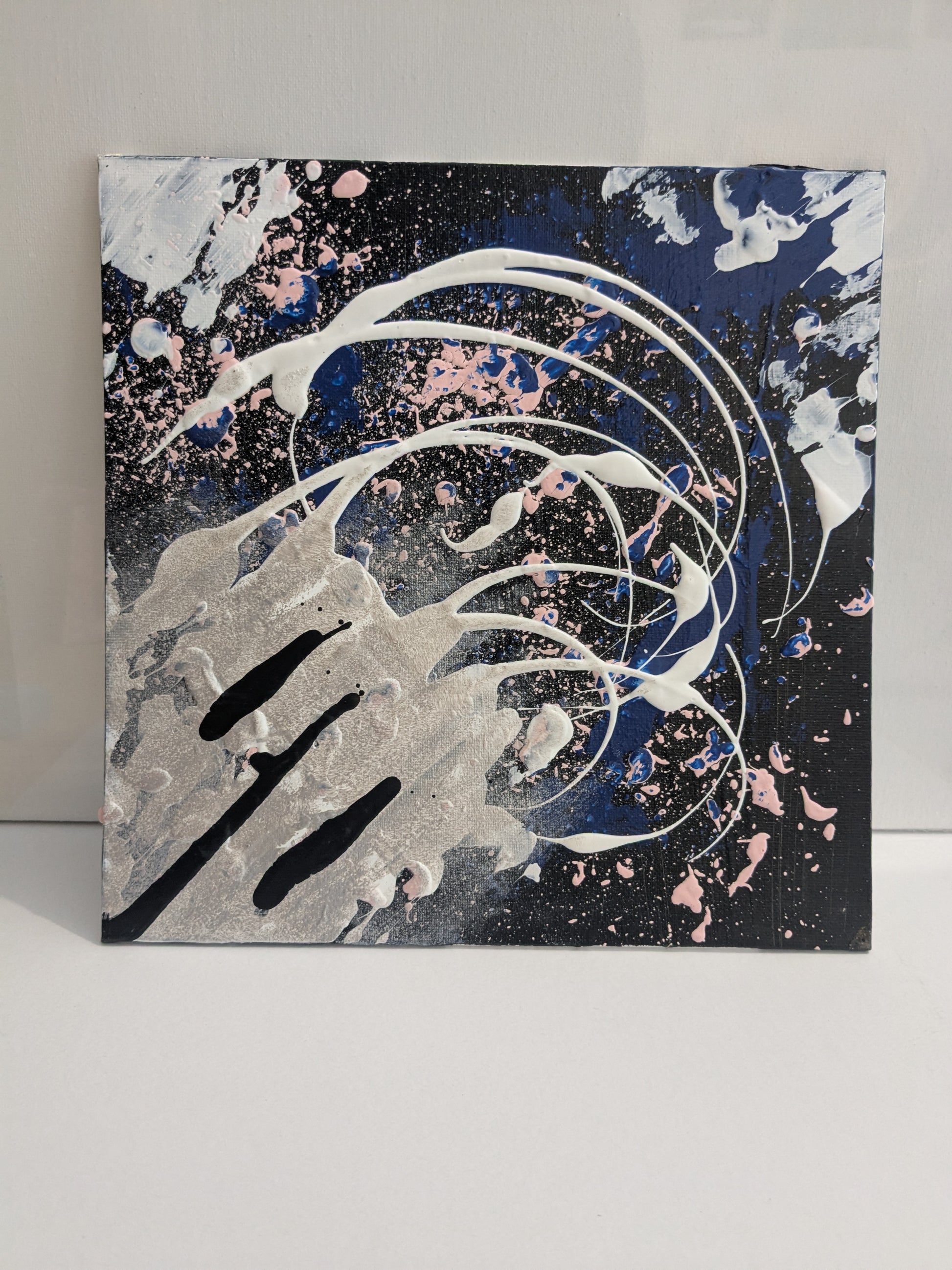 "0308C" est une peinture acrylique abstraite originale, sur un carton entoilé au format 25x25cm (année 2025).