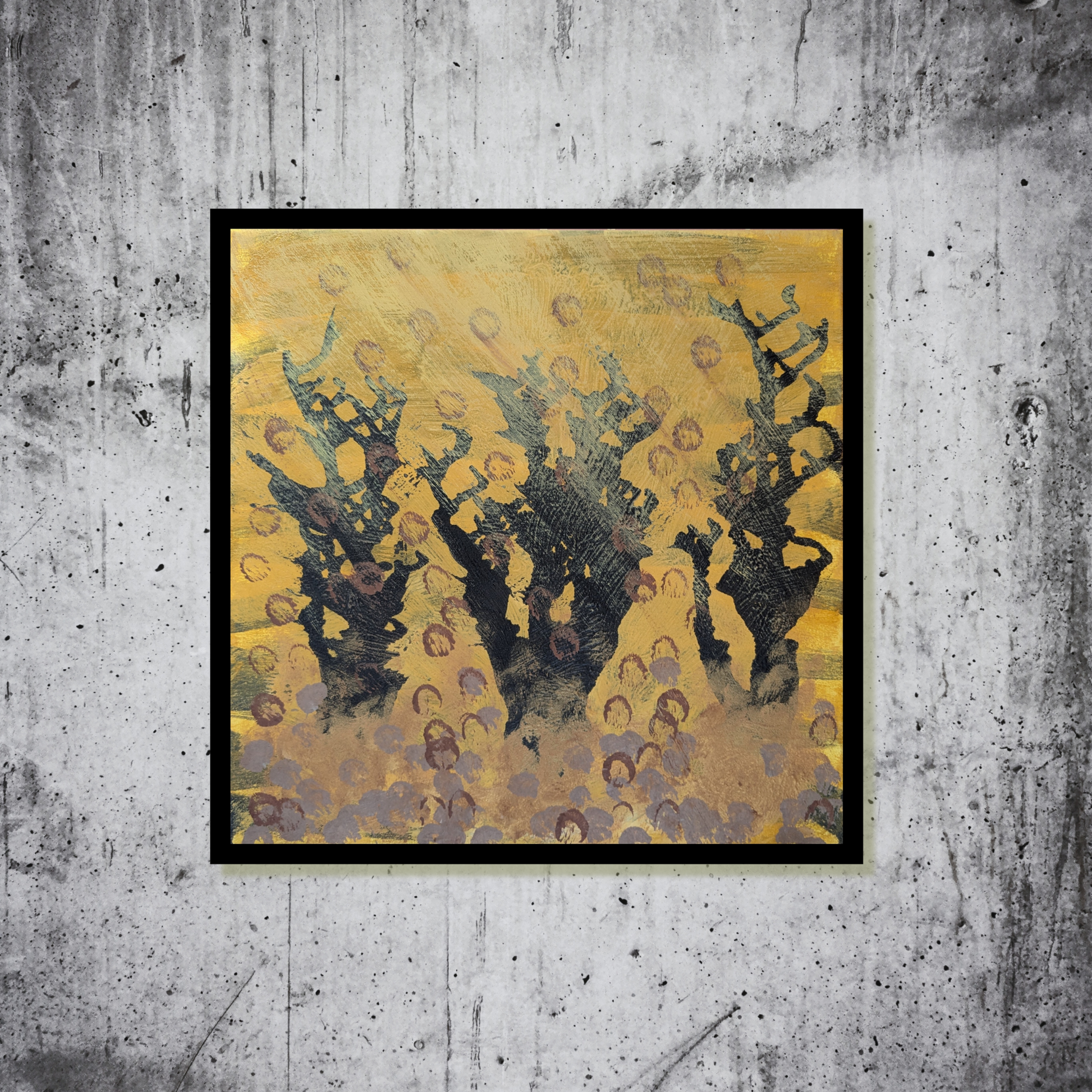 Les trois arbres du feu - peinture acrylique originale 30x30cm (2025)