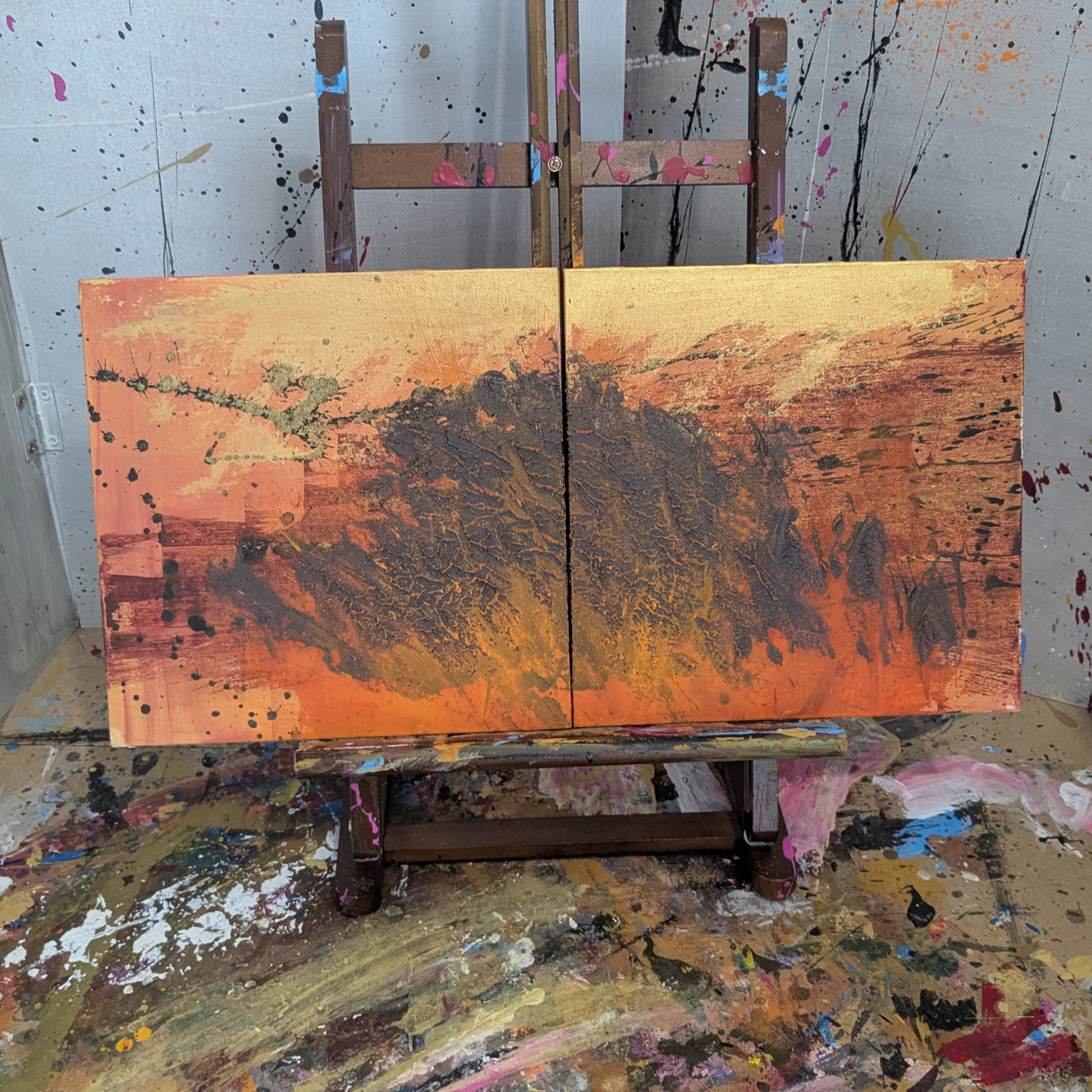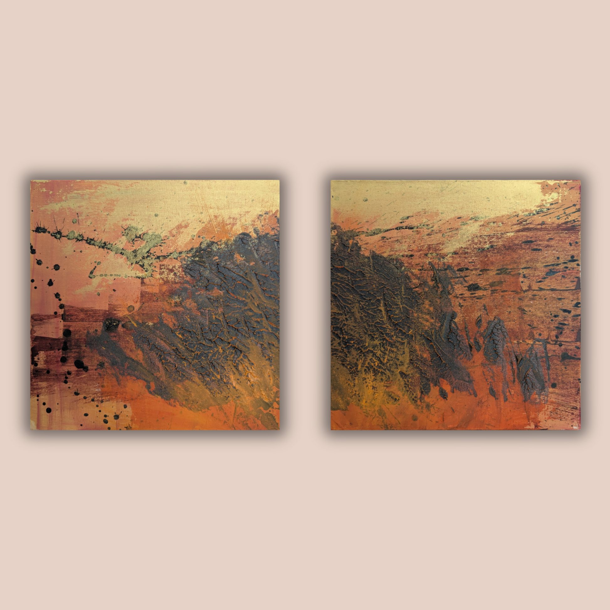 0411B - Diptyque peintures acryliques originales 25x25cm (2025)