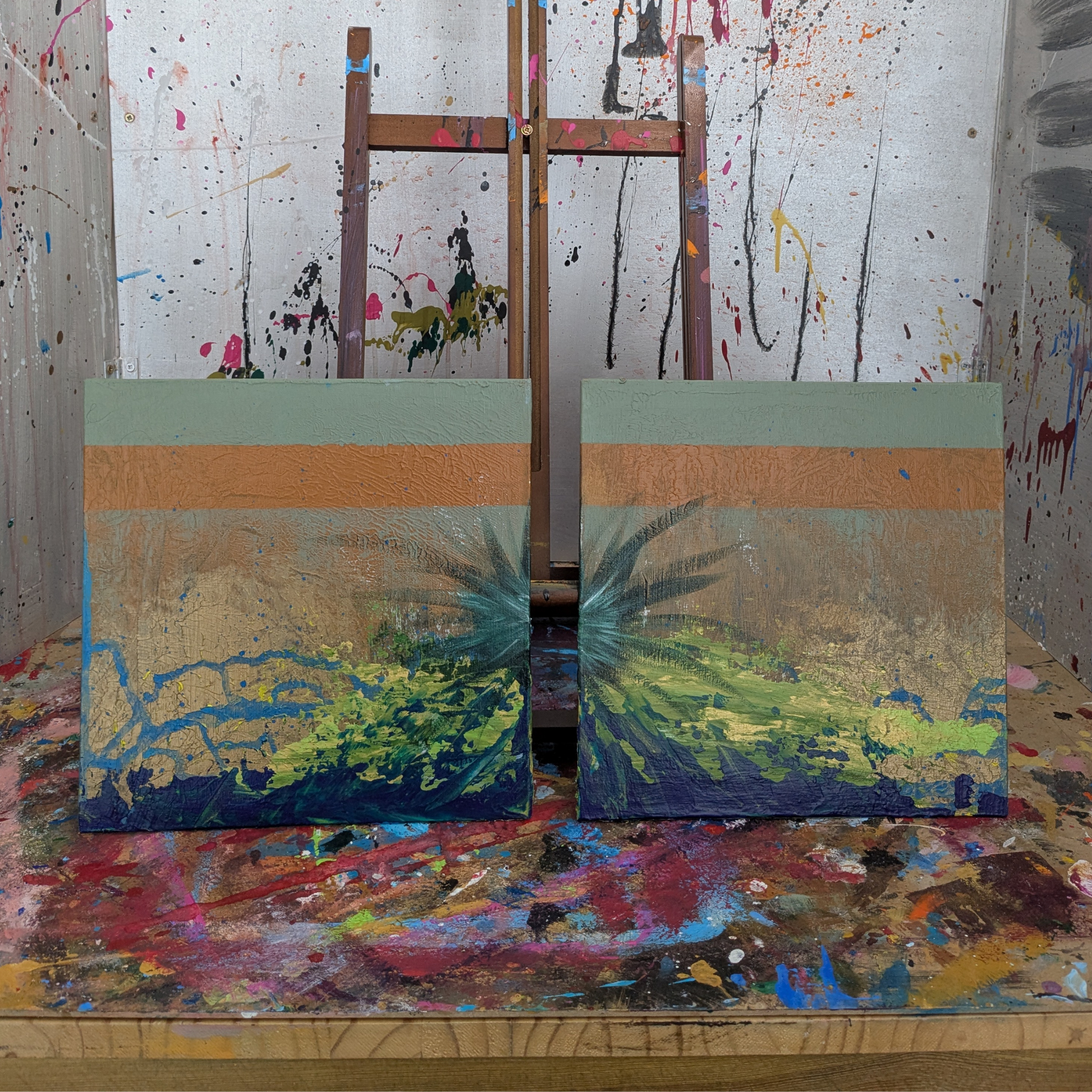 Volcan vert - Diptyque peintures acryliques originales 25x25cm (2025)