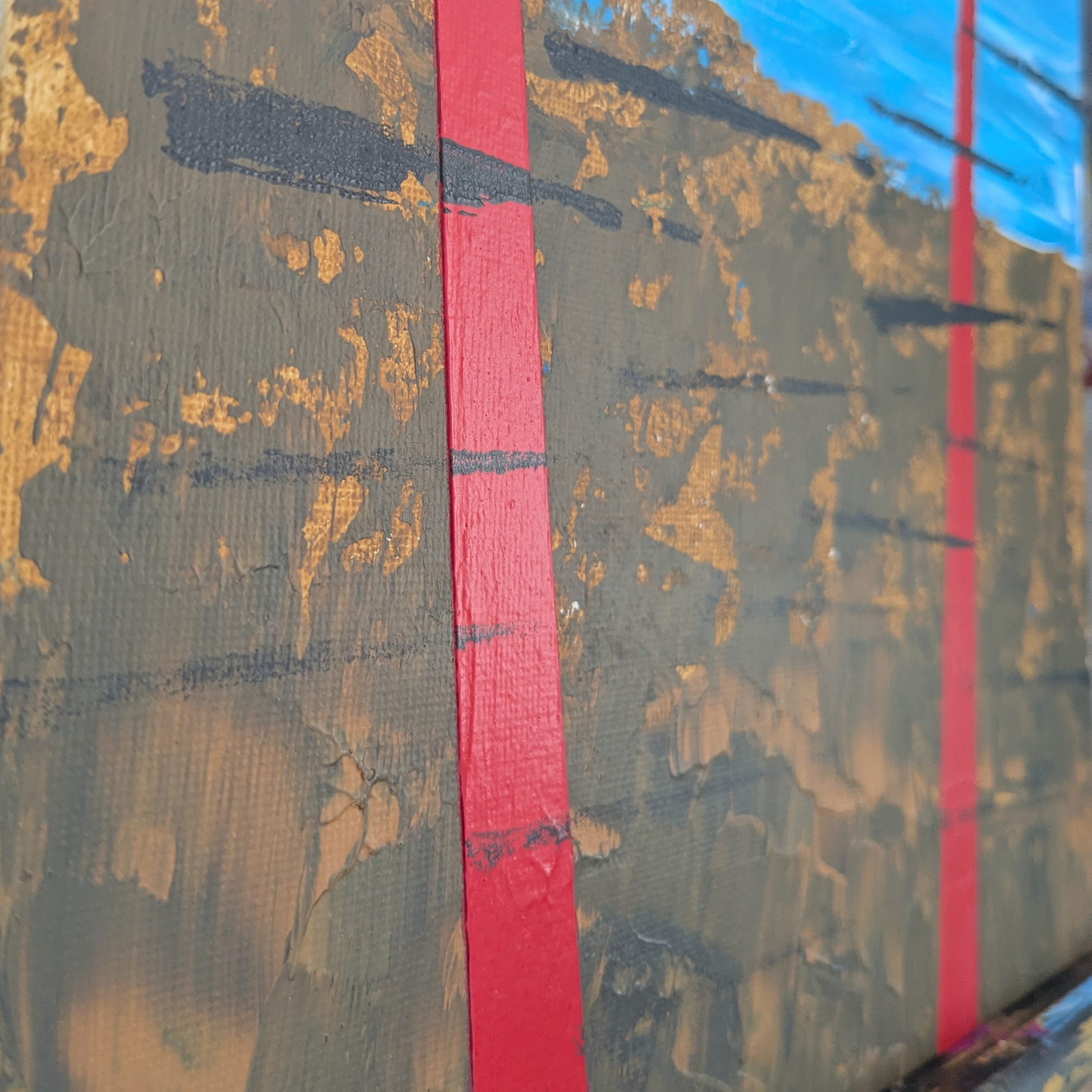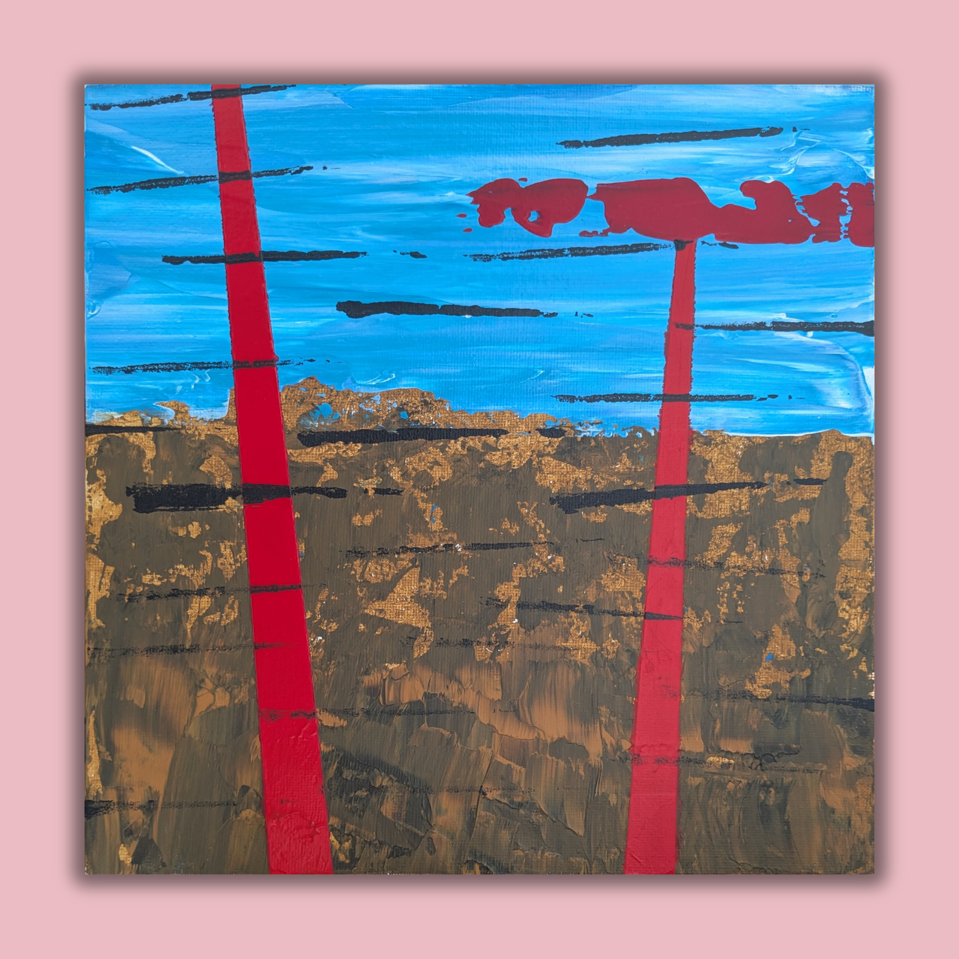Deux tours rouges - peinture acrylique originale 25x25cm (2025)