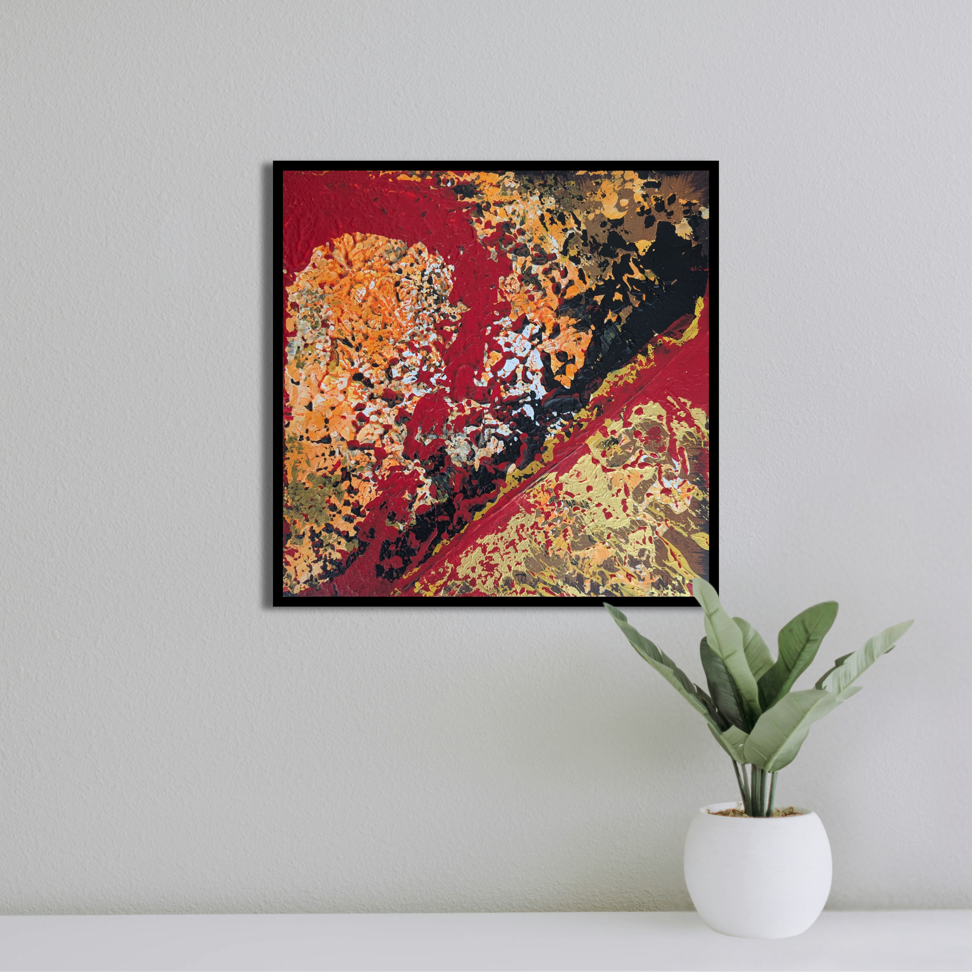 "Le rouge rebondit" est une peinture acrylique abstraite originale, sur un carton entoilé au format 25x25cm (année 2025).
