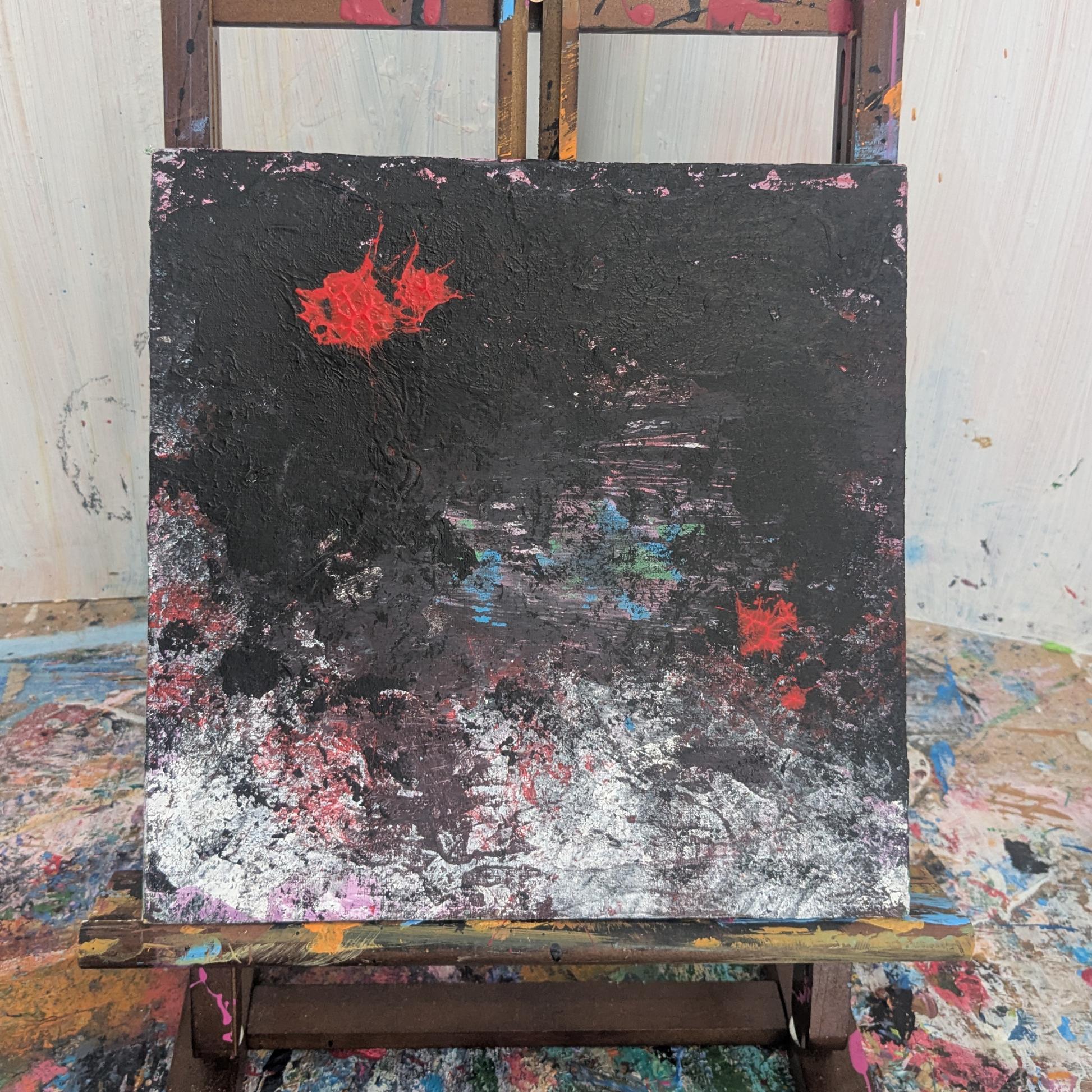 "Sans titre 0602C" est une peinture acrylique abstraite originale, sur un carton entoilé au format 25x25cm (année 2025).