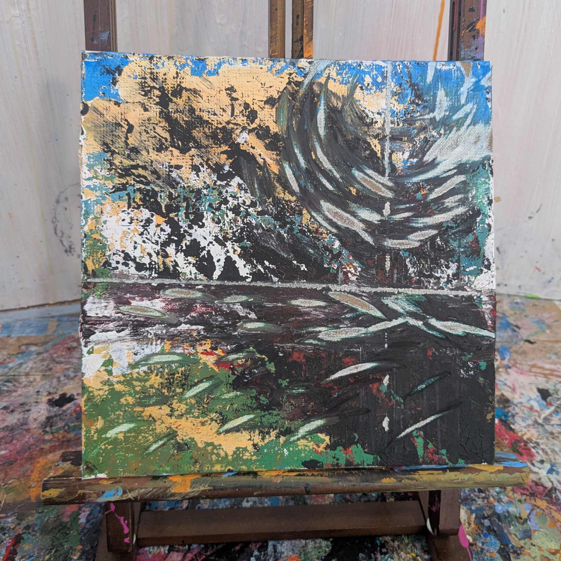 "Sans titre 0603D" est une peinture acrylique abstraite originale, sur un carton entoilé au format 25x25cm (année 2025).