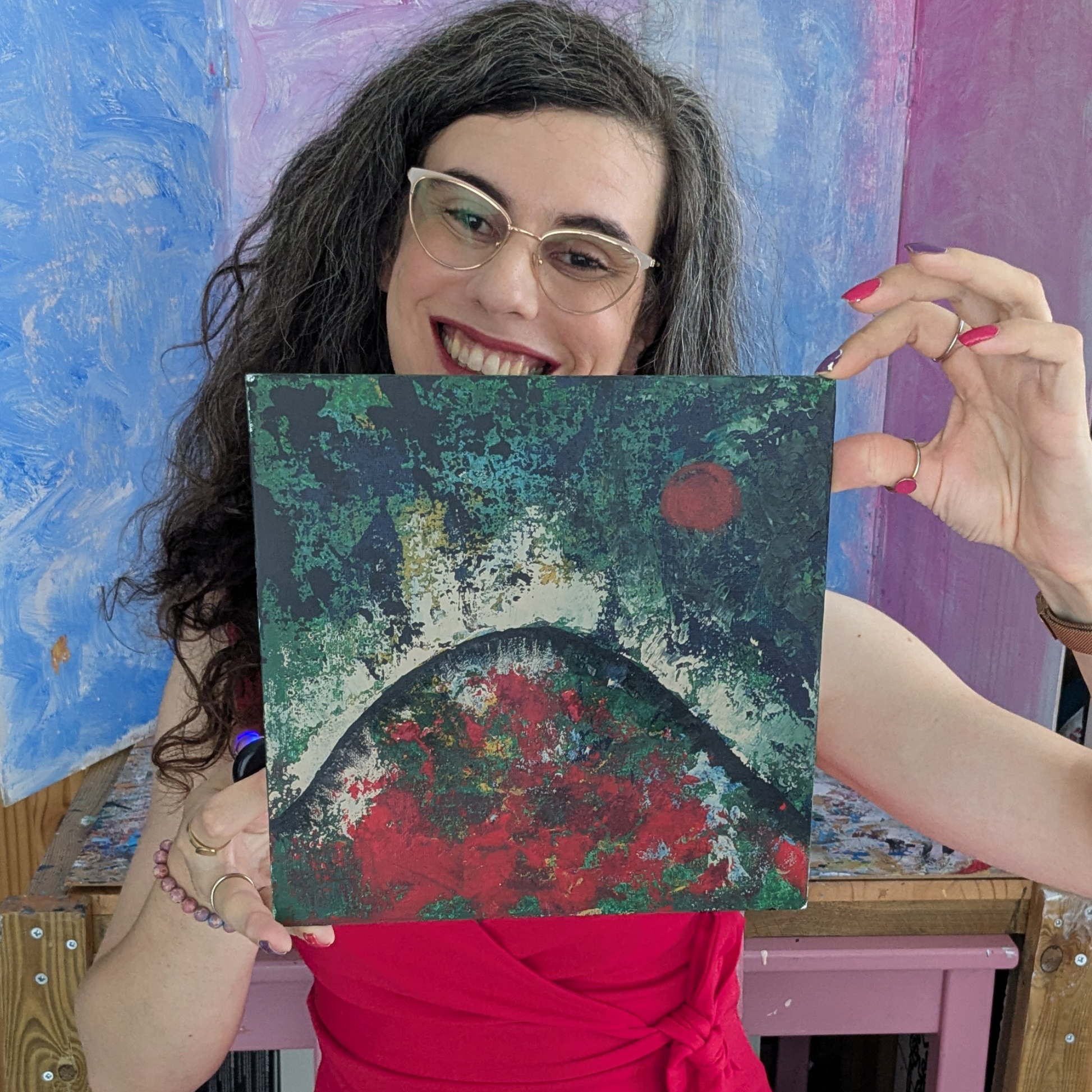 "Sans titre 0706B" est une peinture acrylique abstraite originale, sur un carton entoilé au format 25x25cm (année 2025).