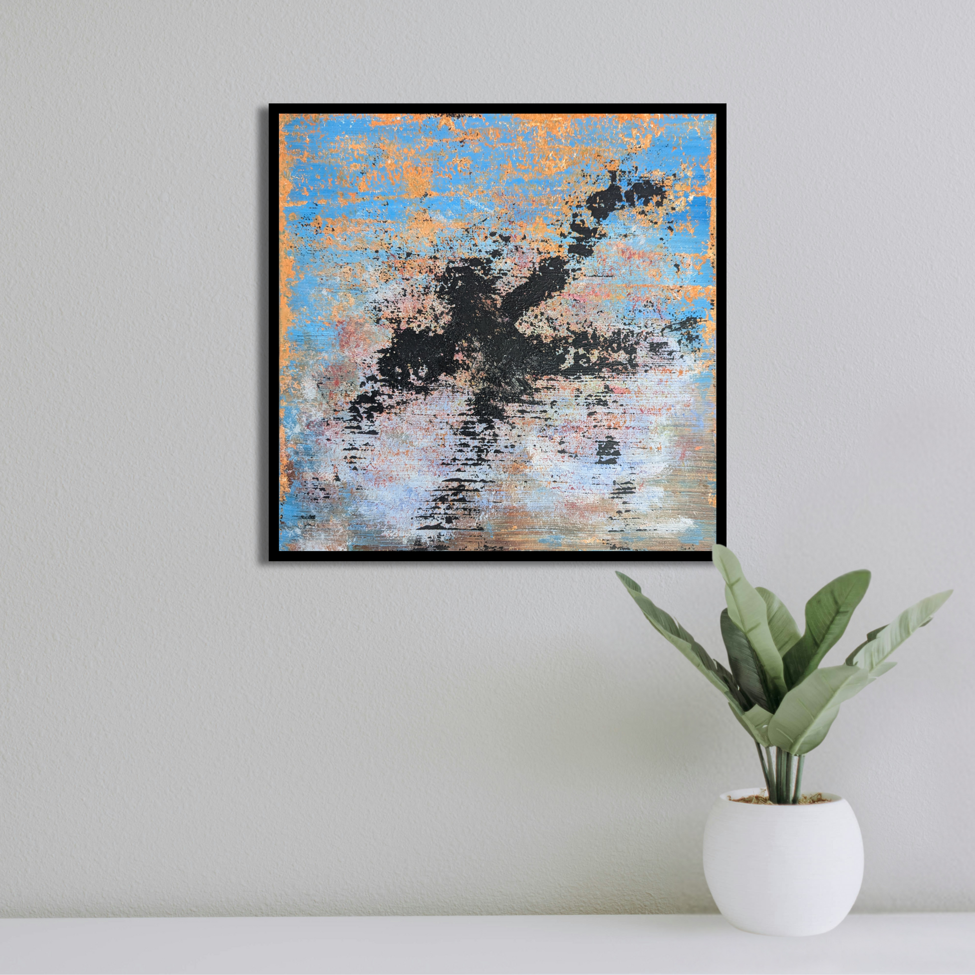 "Sans titre 0718D" est une peinture acrylique abstraite originale, sur un carton entoilé au format 25x25cm (année 2025).