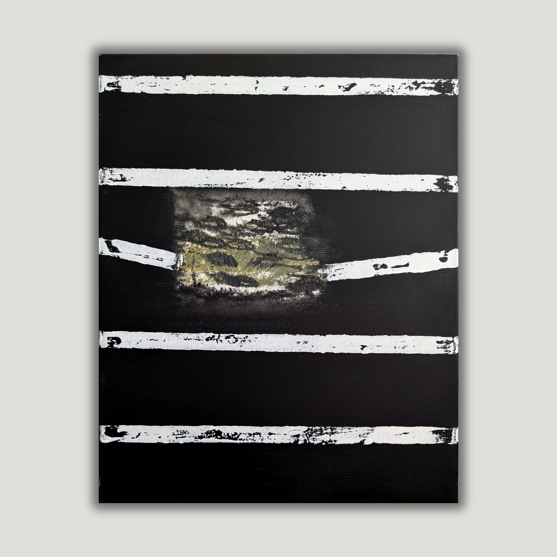 "Entre les lignes" est un peinture acrylique réalisée sur une toile coton sur un châssis bois 40x50cm (année 2025).